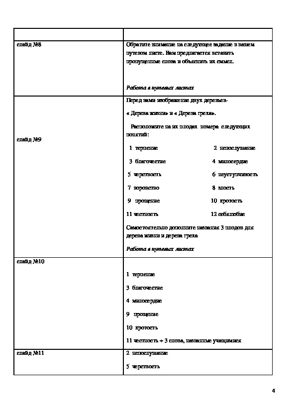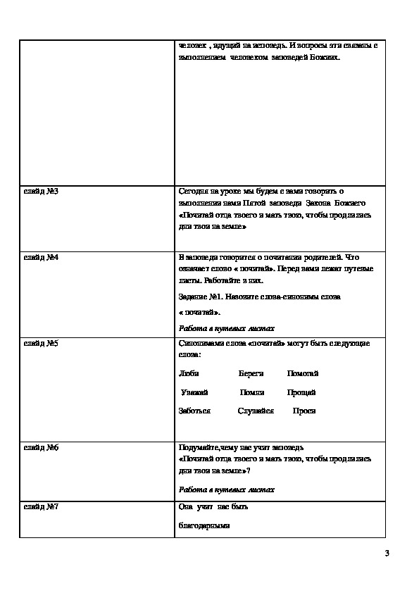 Организовывающая: Организовать на участие в диалоге о послушании детей, о совести, о почитании и