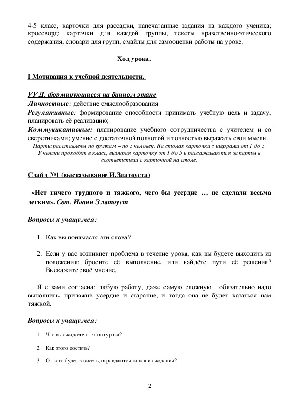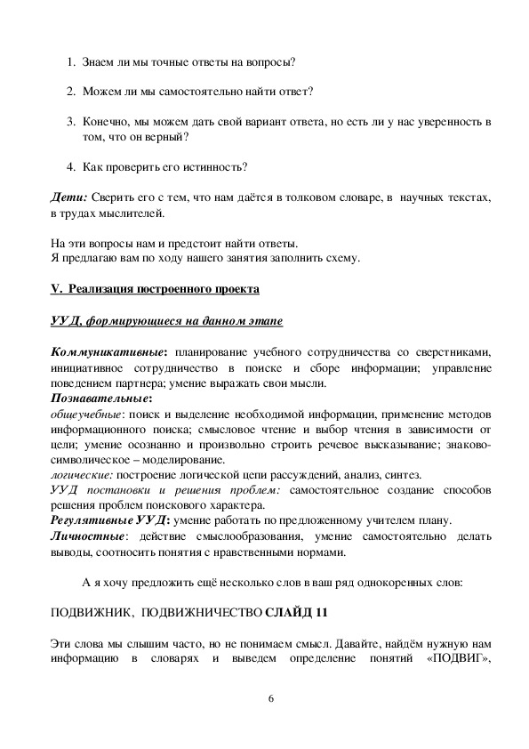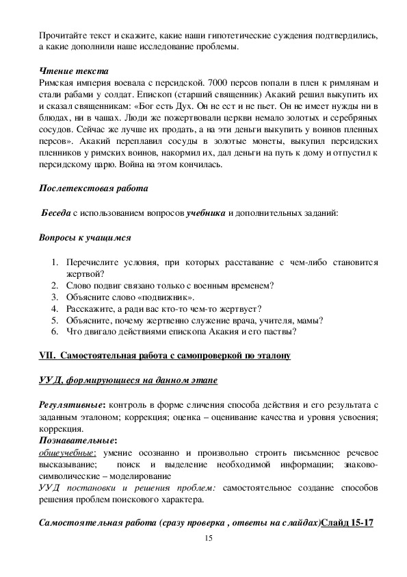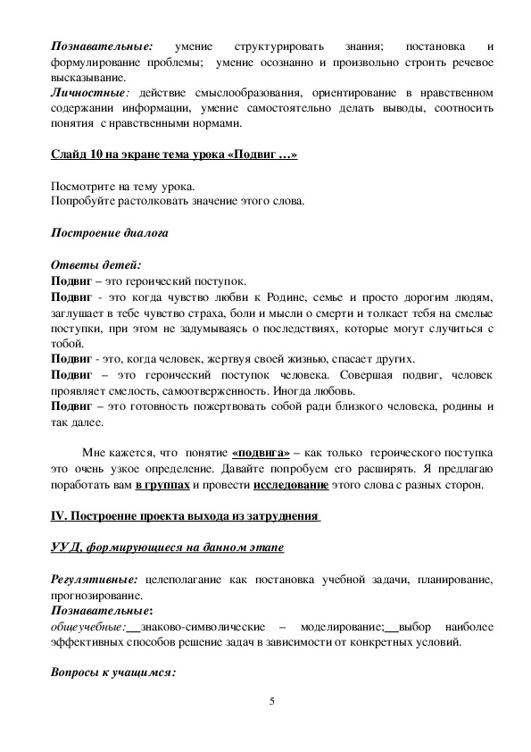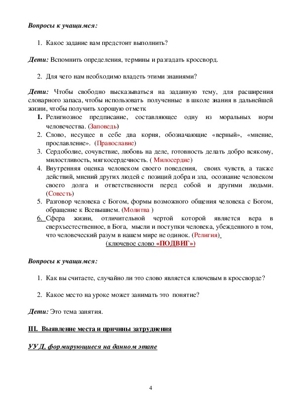 Воспитывающая: понять, что подвижничество – составная часть любого служения (семейного, профессионального, военного, священнического)Конспект урока "Подвиг" 4 класс
