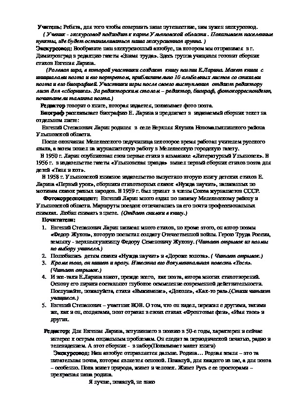 Оборудование: карта Ульяновской области, редакторский стол, макет книги, портреты поэтов,