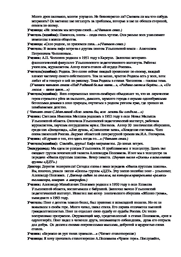 Учитель: В нашем кафе встреча с другим поэтом Ульяновской земли – Анатолием