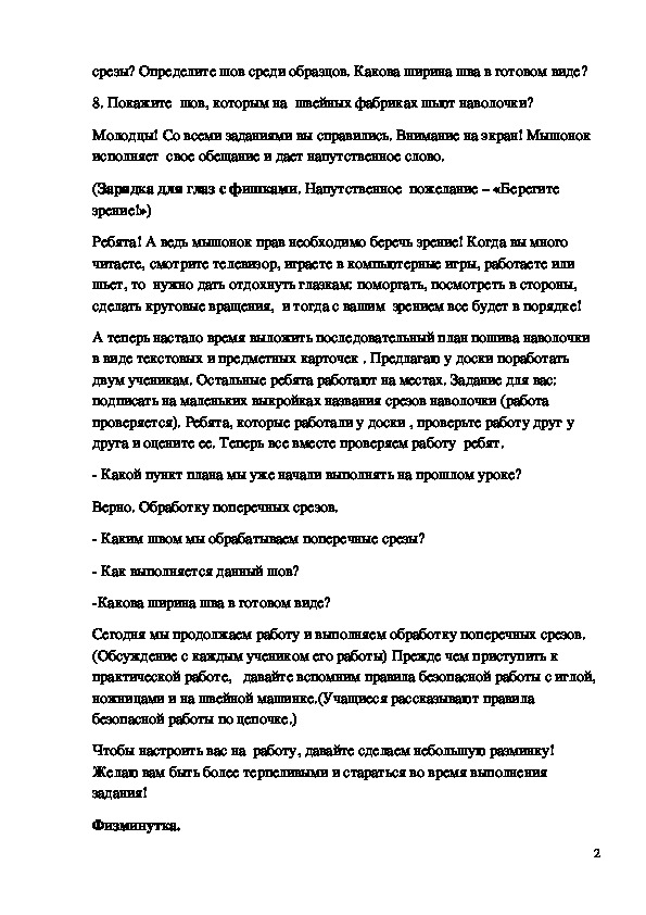 2. Учить выполнять шов вподгибку с закрытым срезом.