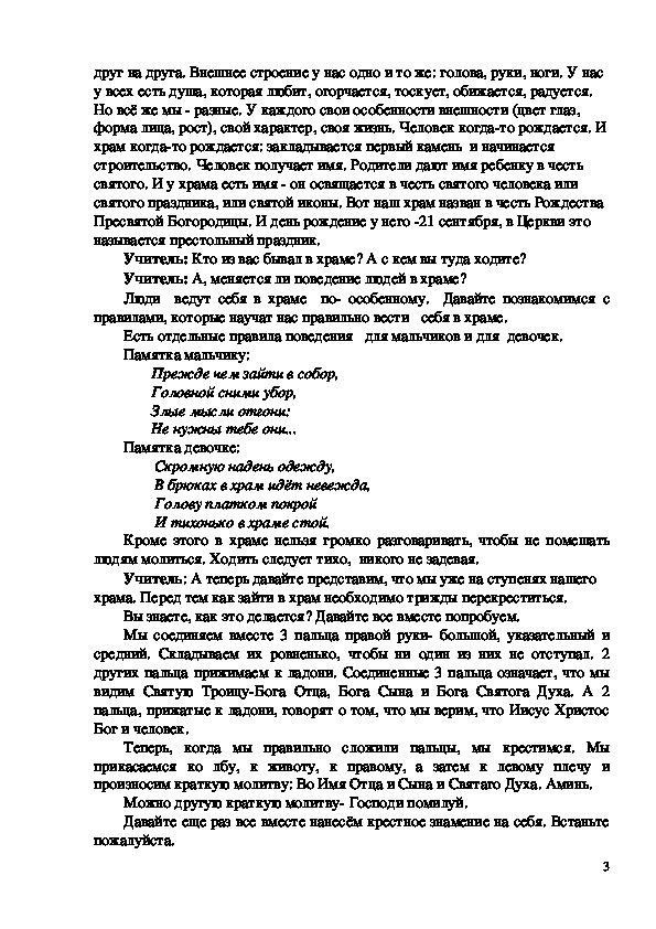 Учитель: Кто из вас бывал в храме? А с кем вы туда ходите?