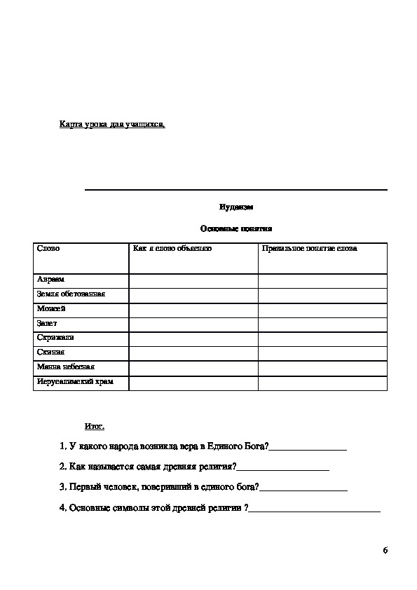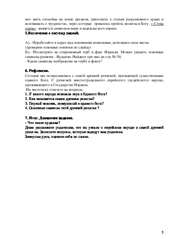Тема урока: Представления о боге в иудаизме.