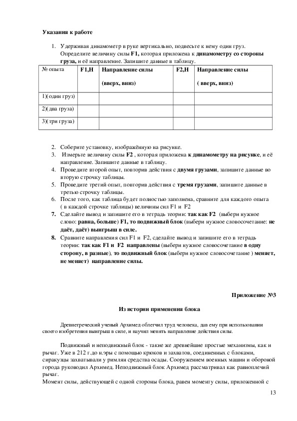 слово: равна, больше) F1, то неподвижный блок (выбери нужное словосочетание: