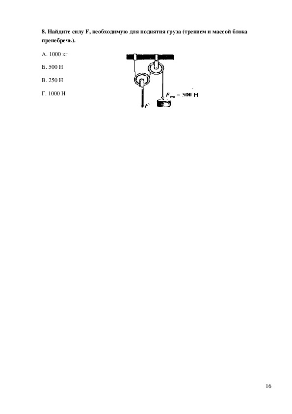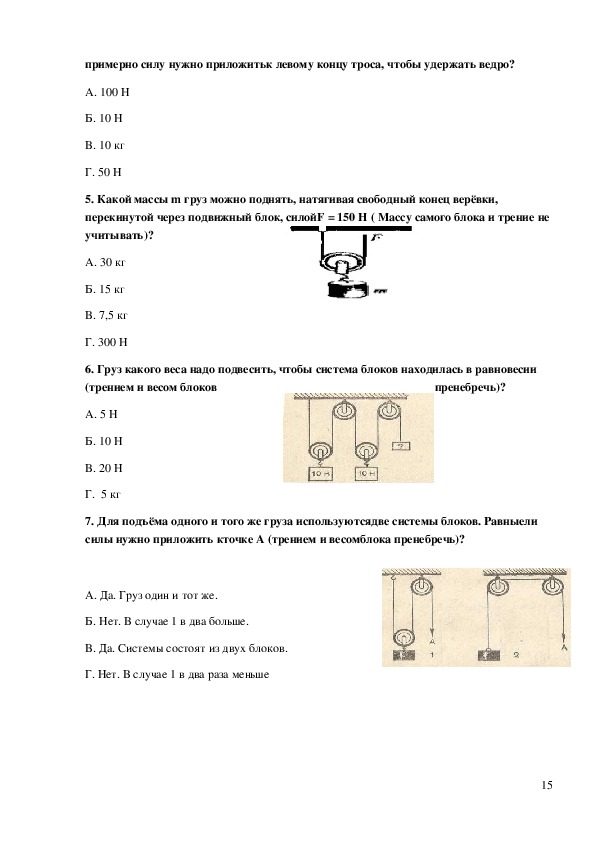 5. Какой массы m груз можно поднять, натягивая свободный конец верёвки,