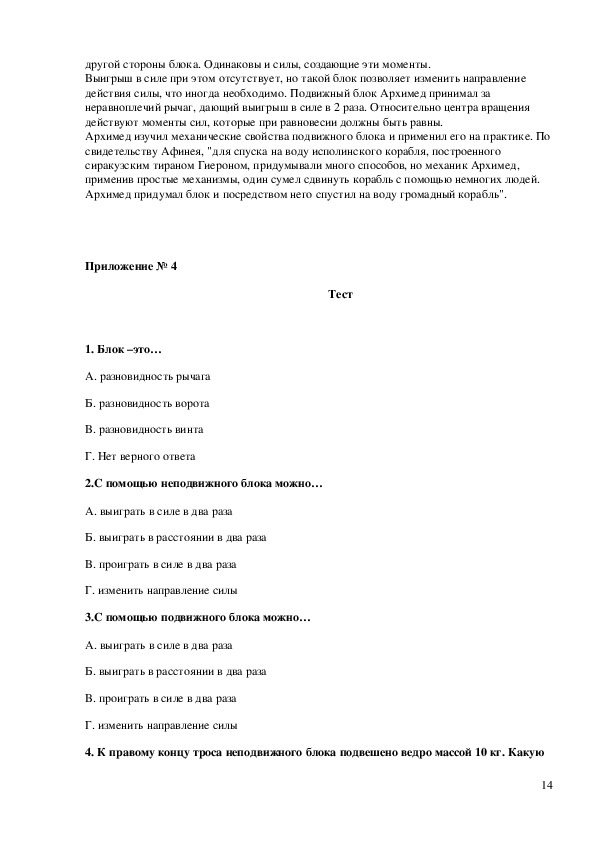 действия силы, что иногда необходимо. Подвижный блок Архимед принимал за