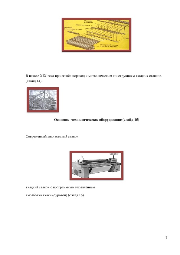 6В начале XIX века произошёл переход к металлическим конструкциям ткацких станков.