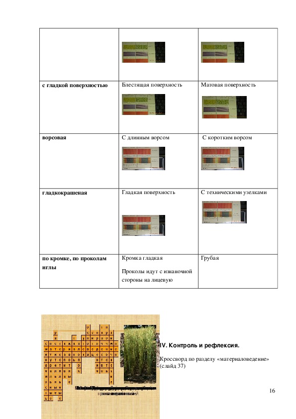 Оборудование: таблица, клей, образцы ткани.