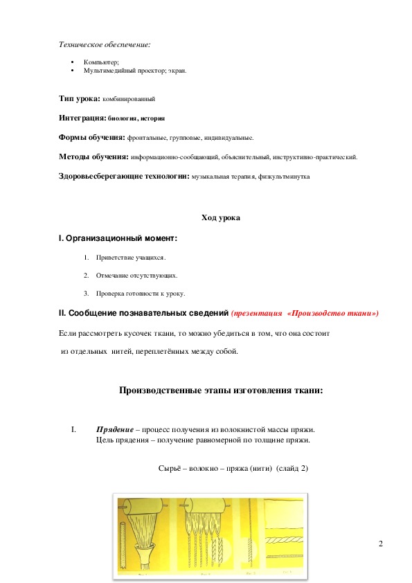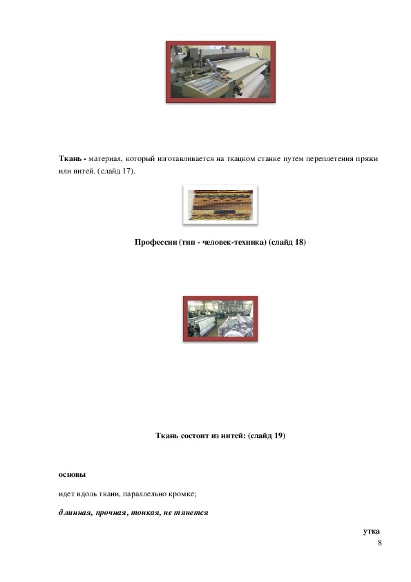 Тема: «Производство тканей. Ткань и