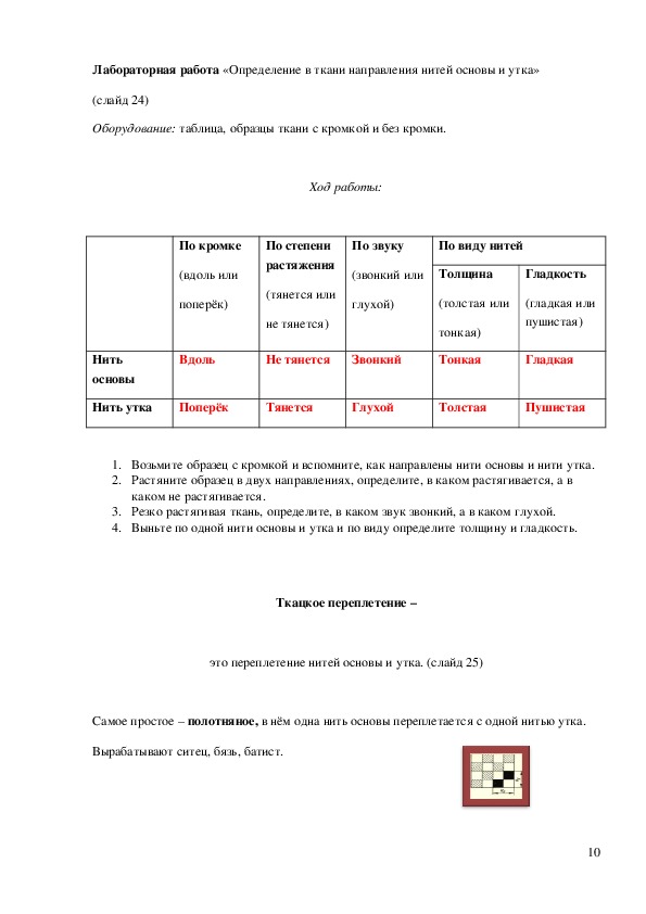 II. Ткачество – процесс получения ткани из пряжи (слайд 10)