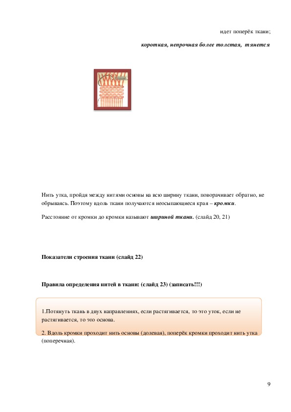 это переплетение нитей основы и утка. (слайд 25)