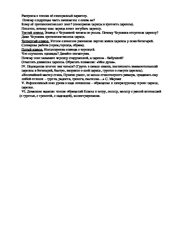 V. Рефлексивный этап урока в виде сочинения – обращения к литературному герою: царице,