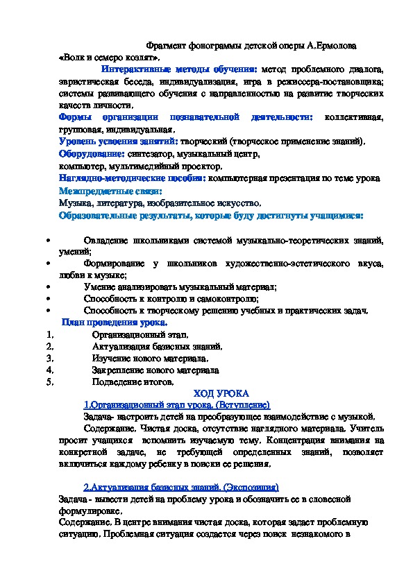 урока музыки «Путешествие в музыкальный театр. Опера»