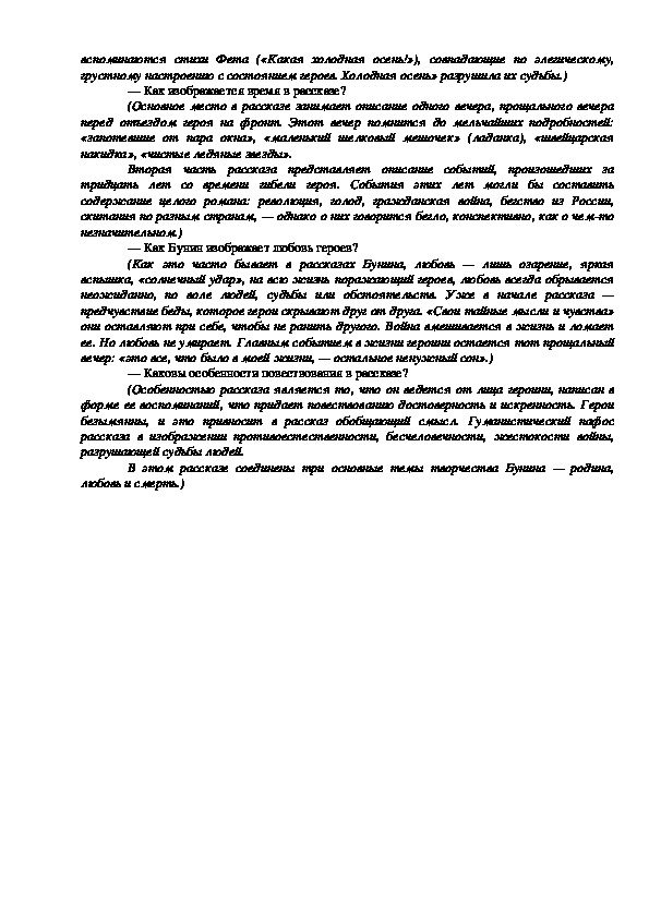 В этом рассказе соединены три основные темы творчества Бунина — родина,