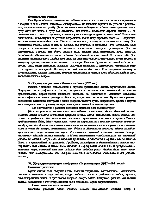 VI. Обсуждение рассказов из сборника «Темные аллеи» (1937—1944 годы)