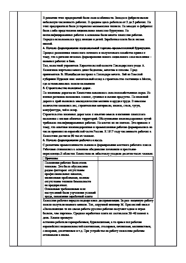 С развитием промышленности связано и формирование местного рабочего класса Рабочими становились в основном обедневшие кочевники и крестьяне-переселенцы.В областях Казахстана на забастовку уходили десятки тысяч человек.