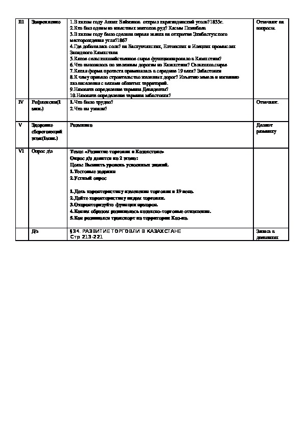 VI Опрос д\з Тема: «Развитие торговли в Казахстане»