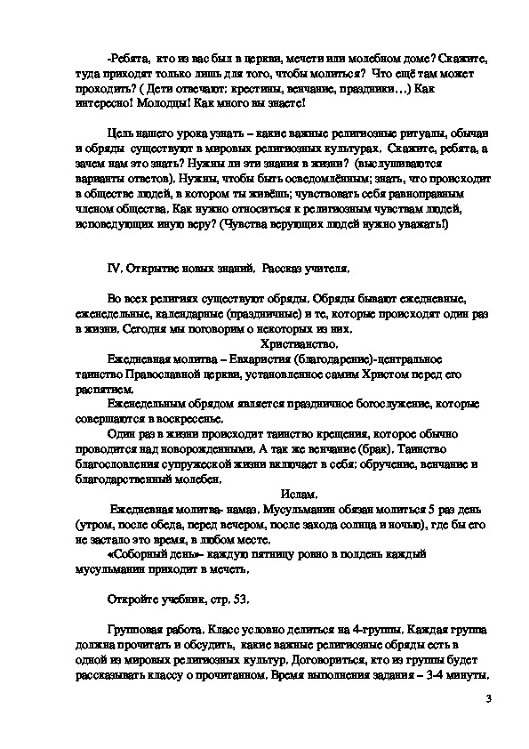 Цель урока: познакомить учащихся с религиозными обычаями и обрядами в