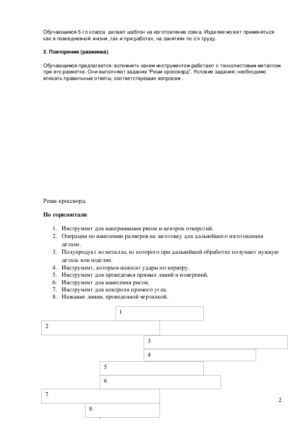 при его разметке. Они выполняют задание “Реши кроссворд”. Условие задания: необходимо
