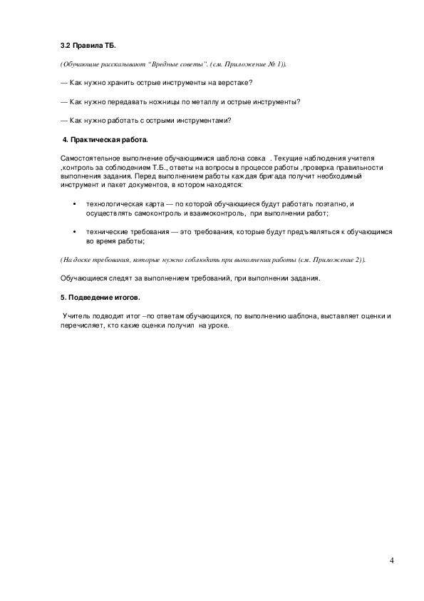 Материалы и оборудование: технологические карты , технологические требования, чертилка,