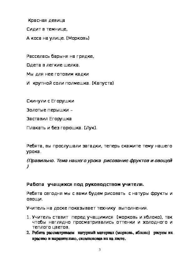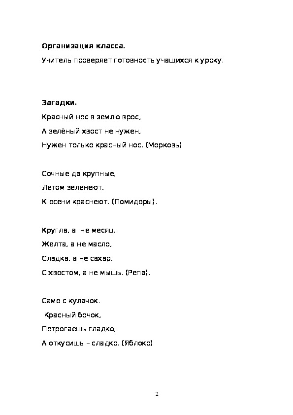 1. Учитель ставит перед учащимися (морковь и яблоко), так