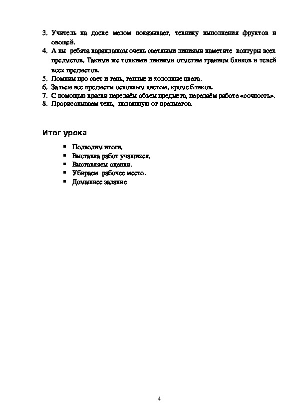 Конспект урока "Рисование фруктов и овощей" 5 класс
