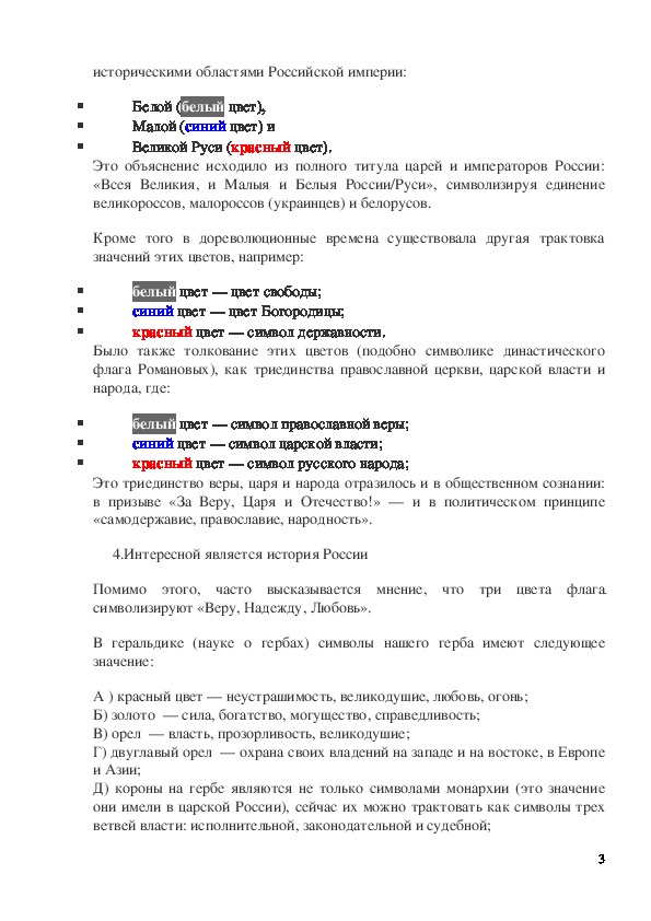 Цветам российского флага приписывается множество символических