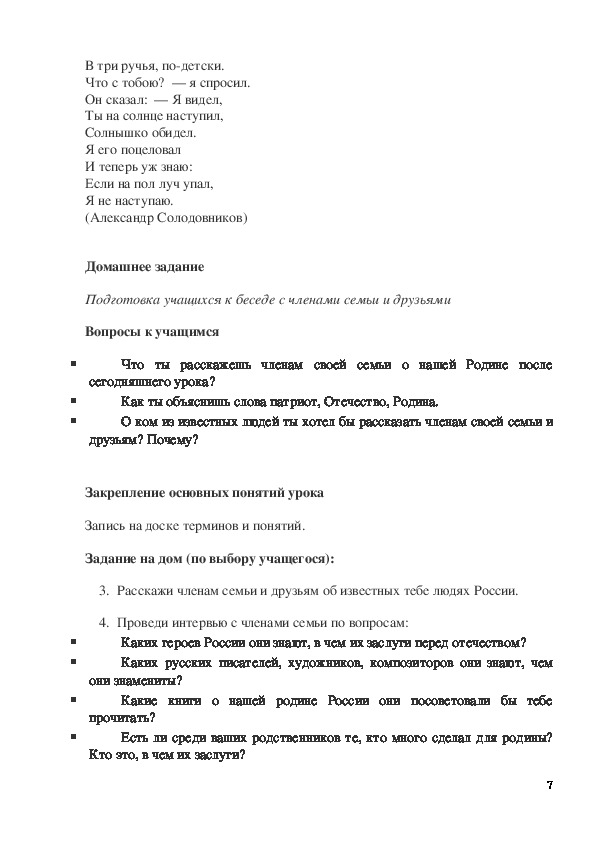 народ, родителей, бережно относится к природе, добросовестно учится или