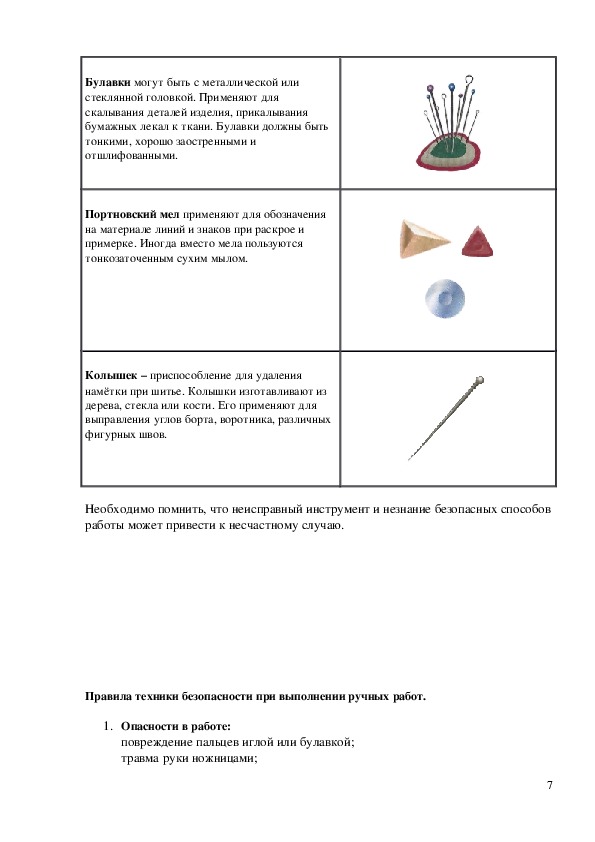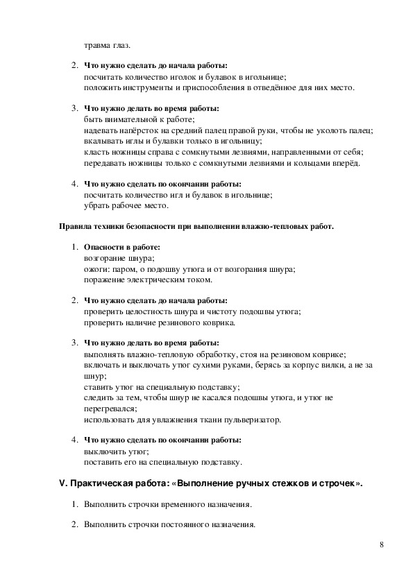 стежков и строчек, ознакомить с правилами Т.Б.