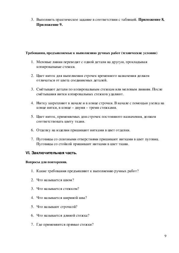 Практическая работа: «Выполнение ручных стежков и строчек»