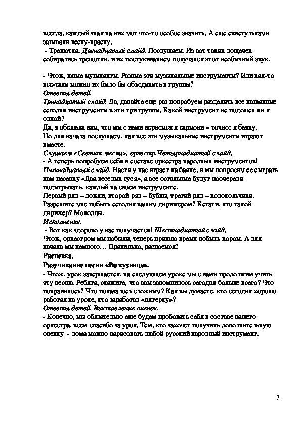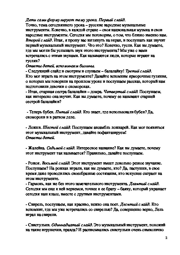 Конспект урока "Русские народные инструменты" 4 класс.Урок музыки в 4 классе.