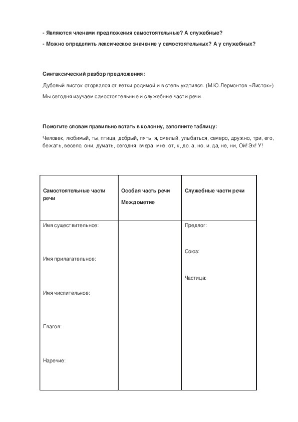 служебных. Знать, какие части речи относятся к самостоятельным, а какие к служебным.
