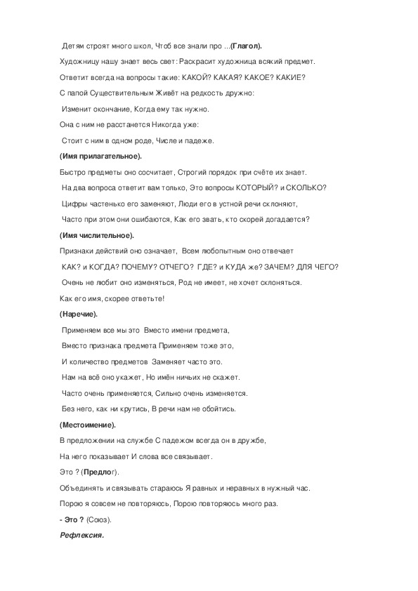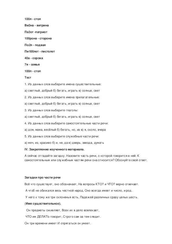 А сейчас отгадайте загадку. Назовите часть речи, о которой говорится в ней. К