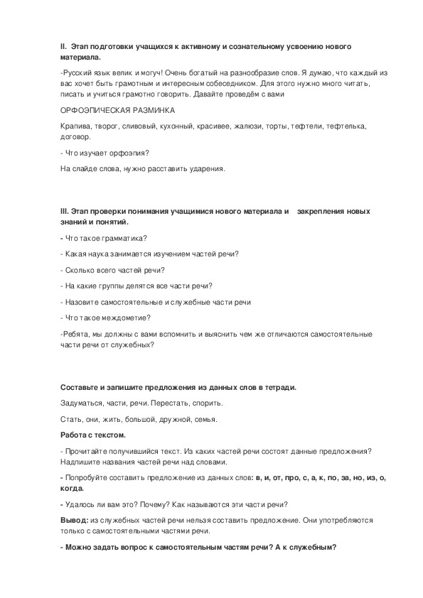 III. Этап проверки понимания учащимися нового материала и закрепления новых