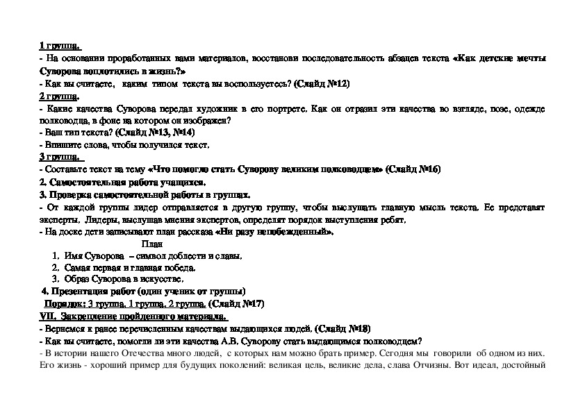 Составьте текст на тему «Что помогло стать Суворову великим полководцем» (Слайд №16)