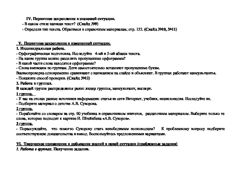 Цель: создать условия для осознания и осмысления работы над текстом.