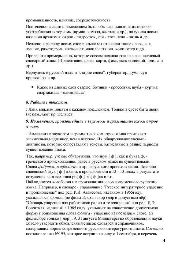 Урок "Язык как развивающееся явление". (7й класс)