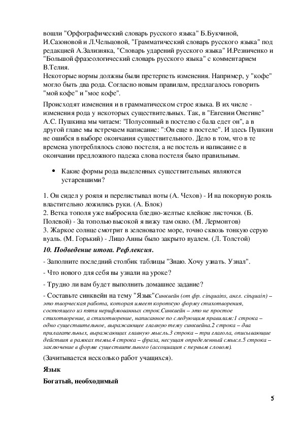 лексического состава языка? (Учащиеся из курса 6 класса знают о
