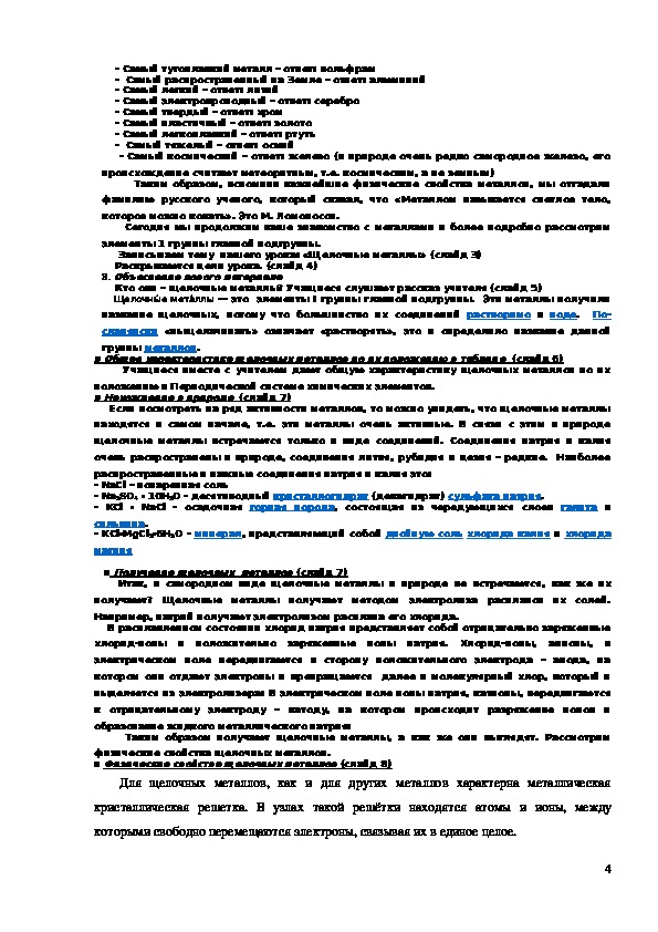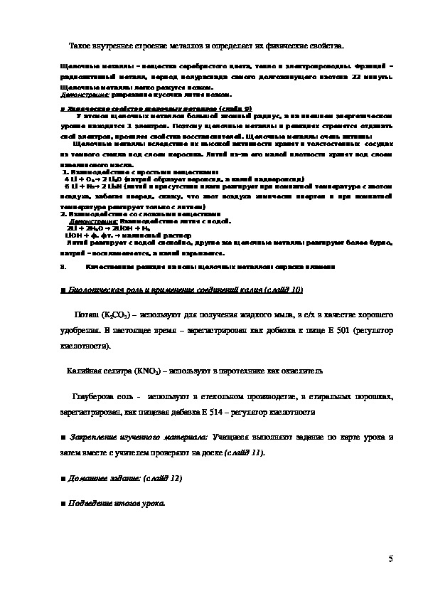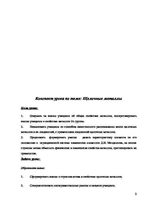 1. Опираясь на знания учащихся об общих свойствах металлов, конкретизировать знания учащихся о свойствах металлов IА группы.