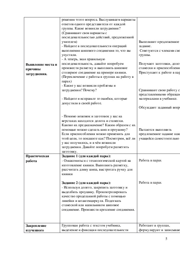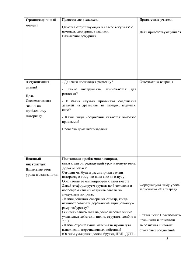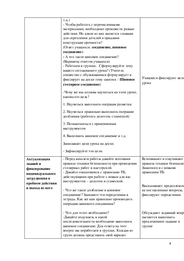 Цель урока: создание условий для практического освоения учащимися приемов выполнения шиповых столярных соединений.
