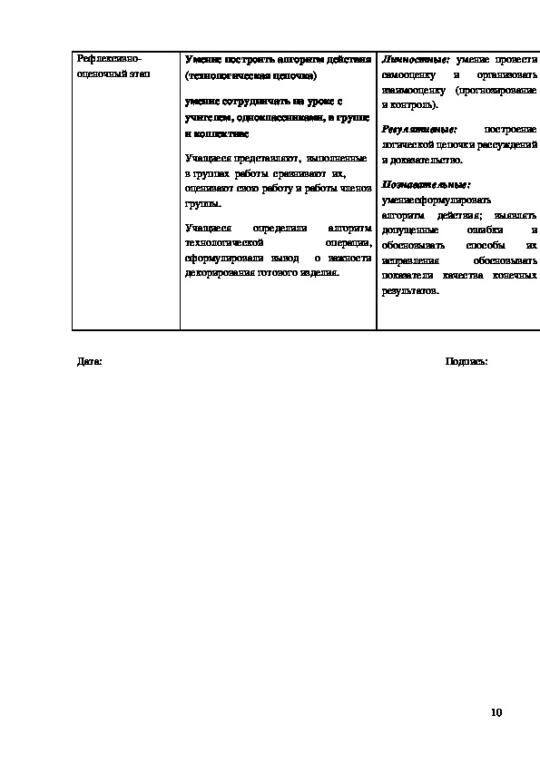 Тип урока: комбинированный (завершающий с оценкой готового изделия).