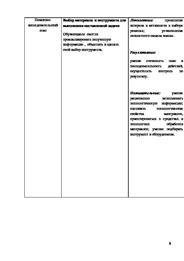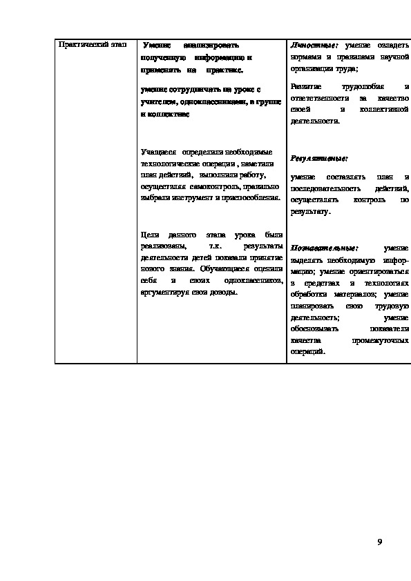 предметные результаты – умение разметки, прямой угол, строение древесины, понятие волокна.