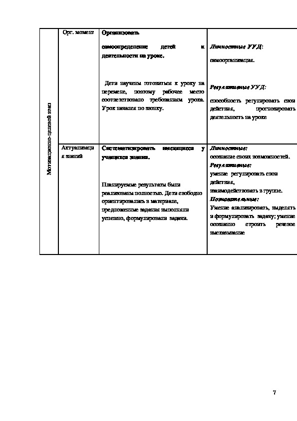 Характеристика учебных возможностей и предшествующих достижений учащихся класса, для которого проектируется урок: