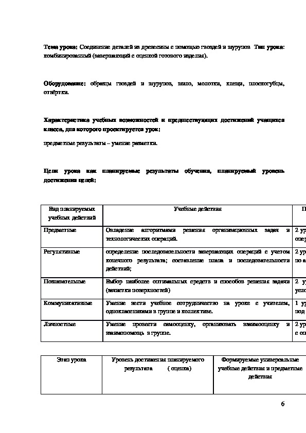 Тема урока: Соединение деталей из древесины с помощью гвоздей и шурупов