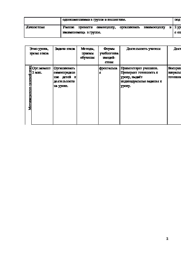 Цели урока как планируемые результаты обучения, планируемый уровень