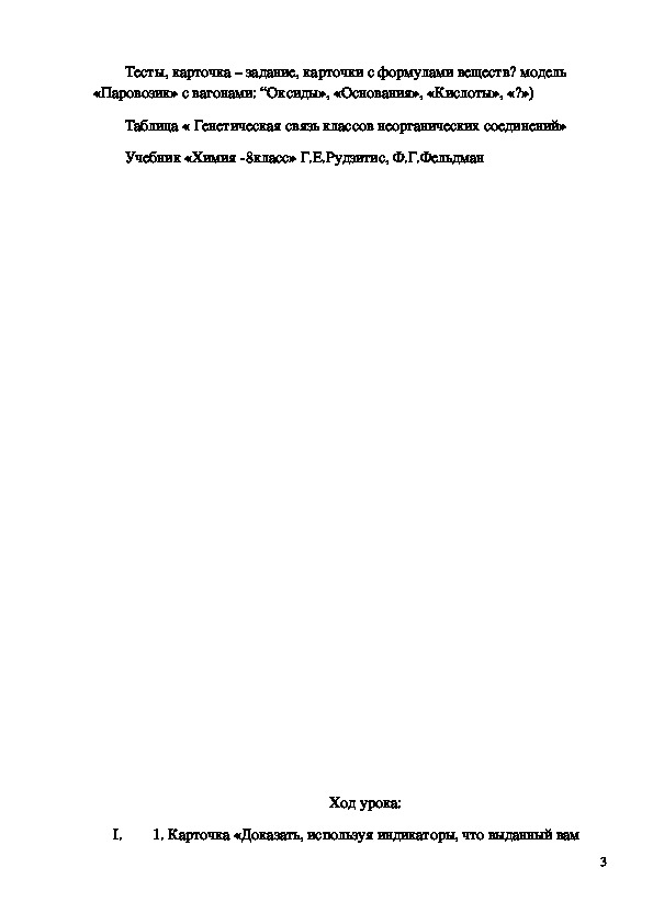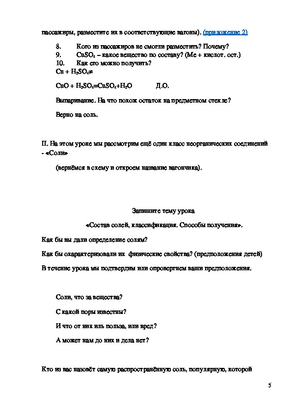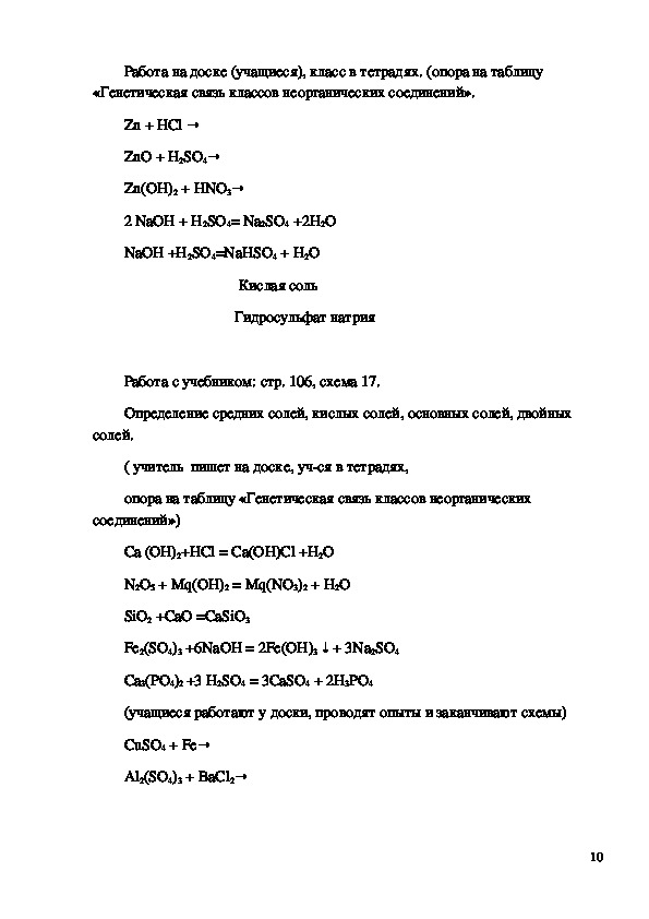Оборудование: Реактивы – H2SO4 (рр), CuO, HCl(pp), NaOH(pp); соли