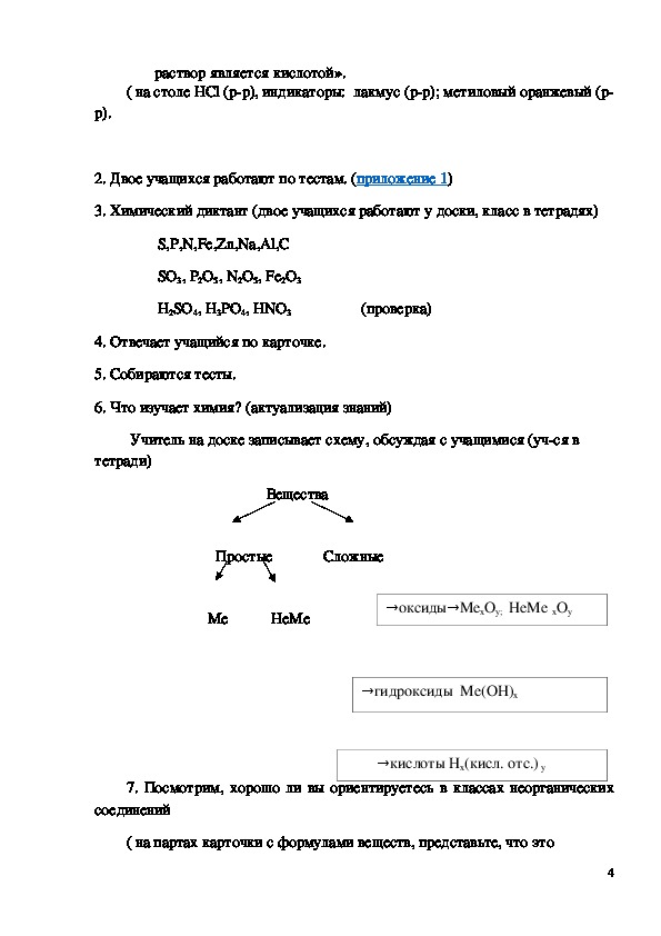( на столе НСl (рр), индикаторы: лакмус (рр); метиловый оранжевый (р
