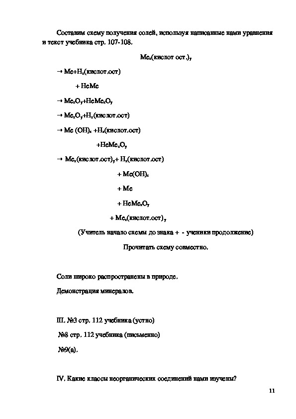 Конспект урока "Состав солей, классификация. Способы получения" 8 класс.Тема урока: «Состав солей, классификация. Способы получения».