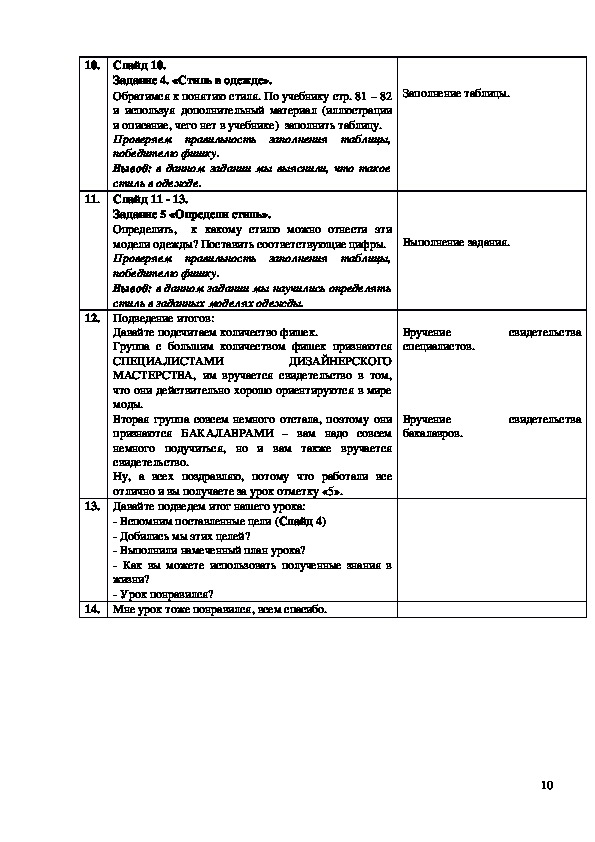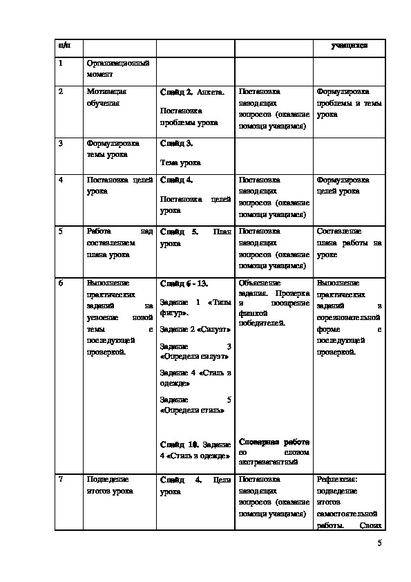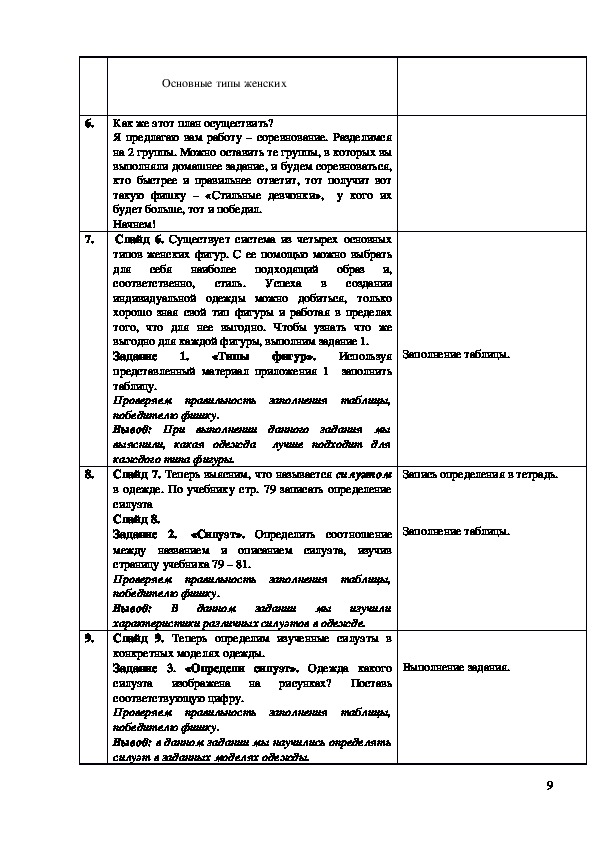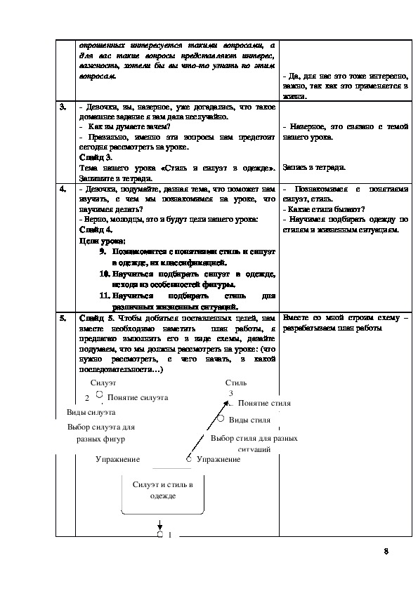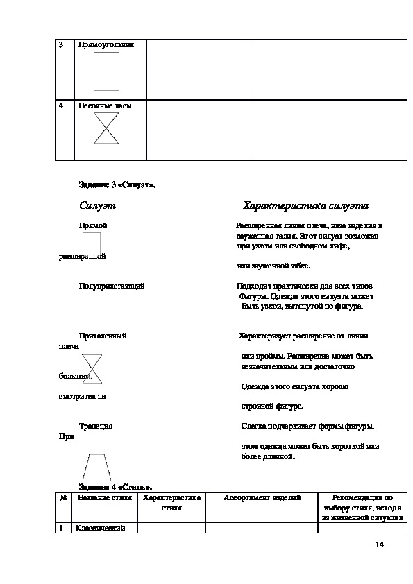 таблиц и схем, по итогам выполнения практических упражнений умение подбирать силуэт