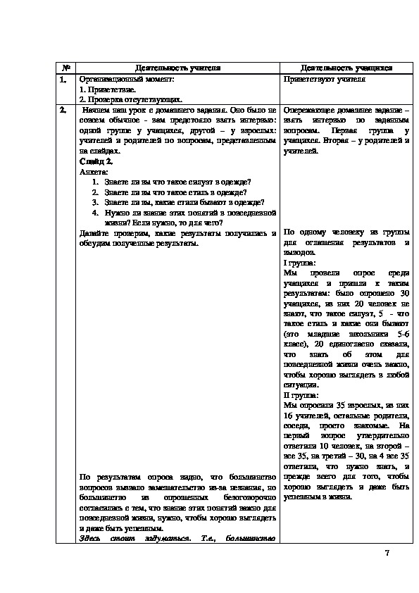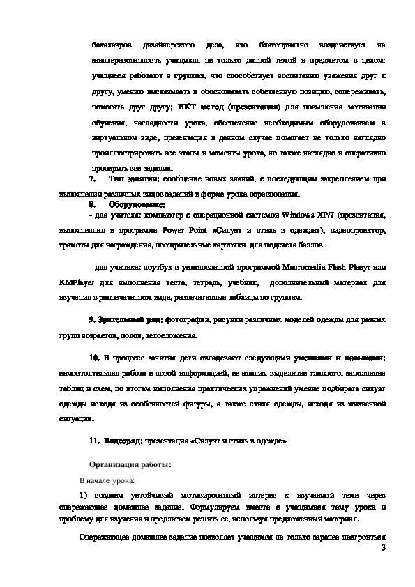 школьников. Уроксоревнование по технологии с применением ИКТ в 7 классе «Стиль и
